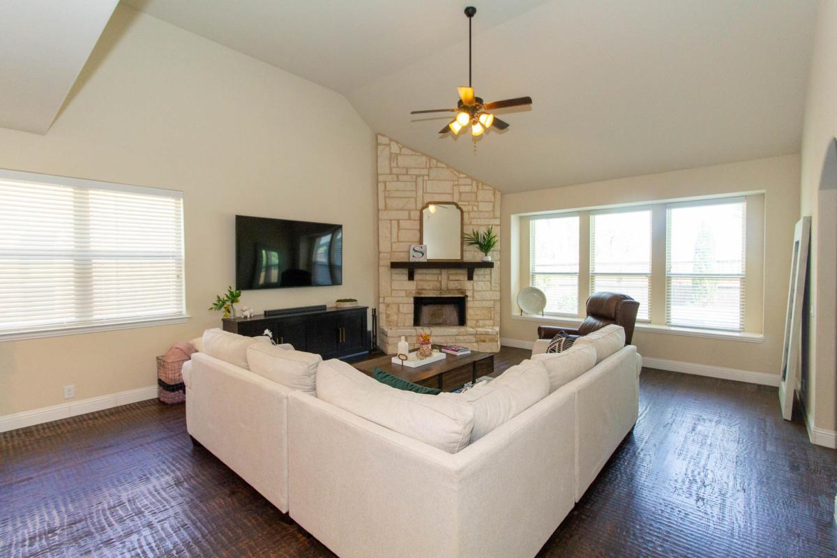 No MUD NO PID NO Wait No mail POD! YES, your very own Brick Mailbox! Lovely Wood Floors, Open Concept living, Study or 5th bedroom down, gorgeous dining room and a wonderful kitchen surrounded by creamy white cabinets, stainless steel appliances and a large pantry with plenty of storage. Never be greeted by your laundry again because you have your very own separate and large utility room! Beautiful family room with stone fireplace, Nest thermostat and great views of the outdoor living area. The spacious primary suite has large windows for natural light and a bath area with separate tub and shower. Upstairs will not disappoint with 3 bedrooms, 2 full baths and a Game-room or 2nd living room. Perfect staycation backyard with a Pool, Pergola and Patio. Plenty of parking in your 3 car garage!